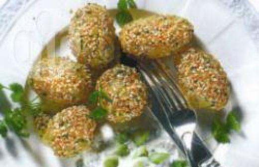 Portionen : 4 1 kg kleine neue Kartoffeln 4 EL Sesamsamen 75 g Butter 1 EL fein gehackter Koriander Kräuterquark: 2 Frühlingszwiebeln 250 g Speisequark 150 g Naturjoghurt 2 EL Schlagsahne 2 EL Zitronensaft Salz Pfeffer 1 EL fein gehackte Petersilie [...]