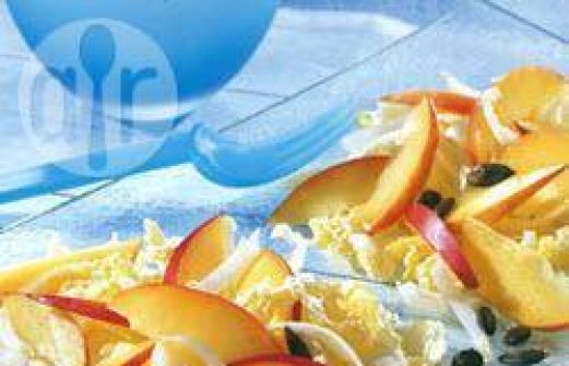 Portionen : 4 40 g geschälte Kürbiskerne 1 kleiner Chinakohl (500 g) 1 Chicoréestaude 3 vollreife Nektarinen Saft von 1 Zitrone 150 g säuerlicher Joghurt 2 EL Rapsöl 1 TL Mango-Chutney Salz schwarzer Pfeffer aus der Mühle 1/4 TL mildes oder scharfes Currypulver [...]