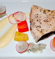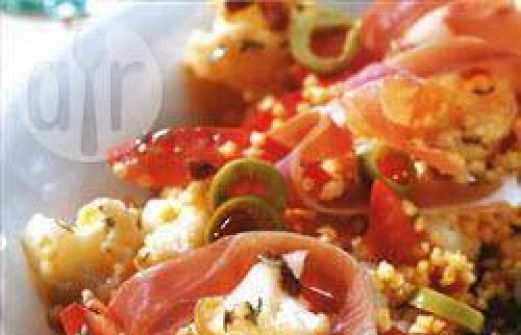 Portionen : 4 150 g Hirse 300 ml Gemüsebrühe 400 g Blumenkohl 4 Tomaten 50 g mit Paprika gefüllte grüne Oliven 100 g Parmaschinken Vinaigrette: 6 in Öl eingelegte getrocknete Tomaten 4 EL Olivenöl 2–3 EL Aceto balsamico 1 EL Zitronensaft Salz, schwarzer Pf [...]