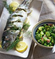 Portionen : 4 400 g Lachsfilet 1 unbehandelte Zitrone 200 ml Fischfond (aus dem Glas) 100 ml trockener Weißwein Salz schwarzer Pfeffer aus der Mühle 200 g TK-Erbsen 150 ml Gemüsebrühe 1 kleiner Eissalat 100 g Salatmayonnaise 100 g saure Sahne 1 TL mittelschar [...]