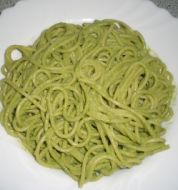 Portionen : 12 175 g frischer Blattspinat 175 g frisches Basilikum 100 g Pinienkerne 50 g Walnüsse 24 entsteinte schwarze Oliven 4 Knoblauchzehen 150 g frisch geriebener Parmesan 75 g frisch geriebener Pecorino 225 ml natives Olivenöl extra Frisch gemahlener sch [...]
