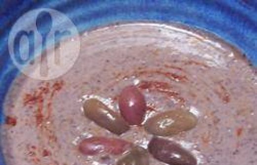 Portionen : 8 1 Knoblauchzehe 1 (400 g)-Dose schwarze Bohnen 2 EL Wasser 2 EL Zitronensaft 1 1/2 EL Tahini (Sesampaste) 3/4 TL gemahlener Kreuzkümmel 1/2 TL Salz 1/4 TL Cayennepfeffer 1/4 TL Paprika 10 griechische Oliven Zub.: 5 Min. 1. Alle Zutaten [...]