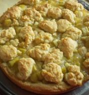 Portionen : 8 350 g Brombeeren 175 g Rhabarber, fein geschnitten 250 g Zucker 4 EL Mehl 1 EL Butter 1 EL Milch 2 Mürbeteigplatten Zub.: 15 Min. | Kochzeit: 45 Min. 1. Die Brombeeren, den Rhabarber, den Zucker und das Mehl vermengen. Backform einfetten. [...]