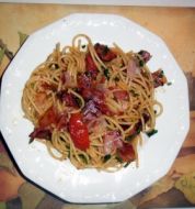 Portionen : 8 1 (500 g)-Packung Penne oder andere Nudeln 8 mittelgroße Tomaten, gewürfelt 4 EL natives Olivenöl 3-4 EL gehacktes frisches Basilikum 1/4 rote Zwiebel, fein gehackt frisch geriebener Parmesan Salz schwarzer Pfeffer aus der Mühle Zub.: 15 Min. | [...]