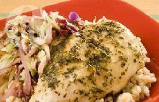 Portionen : 4 3 EL Dijonsenf 2 EL Honig 3-4 EL gehackter frischer Estragon 2-3 EL gehacktes frisches Basilikum 2-3 Thymianzweige (ohne Stängel) 1/8 TL Salz 1/8 TL frisch gemahlener schwarzer Pfeffer 2 TL Olivenöl 4 Hähnchenbrustfilets ohne Haut und Knochen 225 m [...]