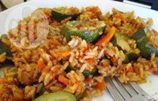 Portionen : 6 1 EL Olivenöl 1 Zwiebel, in Scheiben geschnitten 2 Tomaten, gehackt, 900 g Zucchini, geschält und in Scheiben geschnitten 1 grüne Gemüsepaprika, gehackt Salz frisch gemahlener schwarzer Pfeffer 75 g Langkornreis 150 ml Wasser Zub.: 20 Min. | [...]