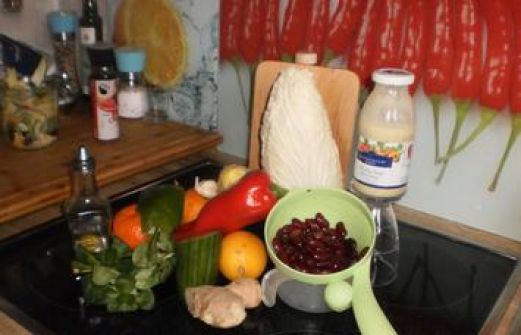 Zutaten für Personen Rezept mit Bild: Salat Kunterbund Bild einstellen 1 Stck. Mango frisch gewürfelt 1 Stck. Zwiebel Ringe 4 Stck. Chinakohl frisch Blätter mit Strunk) 1 Stck. Spitzpaprika rot 0.5 Stck. [...]
