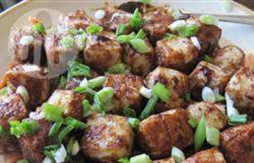 Portionen : 2 350 g Tofu 3 EL Speisestärke Öl zum Frittieren 2 Frühlingszwiebeln, gehackt 2 EL Hoisinsauce Zub.: 10 Min. | Kochzeit: 5 Min. 1. Tofu in 12 gleich große Würfel schneiden. Die Speisestärke in einen großen tiefen Teller geben und den Tofu darin v [...]