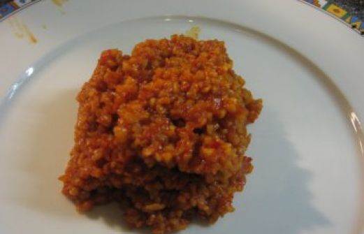Zutaten für Personen Rezept mit Bild: Bulgur Pilaw-Reis (schnelle Beilage) mal was anderes! Bild einstellen 1 Zwiebel 1 Knoblauchzehe 2 EL Tomatenmark 1 Tasse Bulgur 2 Tassen Wasser Salz [...]