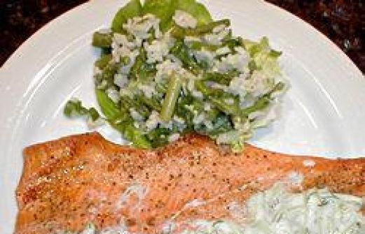 Portionen : 4 225 g Naturjogurt 1 Salatgurke, gerieben 2 EL gehackter frischer Dill 1 TL Zitronenschale 1 EL natives Olivenöl Salz frisch gemahlener schwarzer Pfeffer 4 filettierte Regenbogenforellen Zub.: 12 Min. | Kochzeit: 8 Min. 1. Jogurt, Gurke [...]