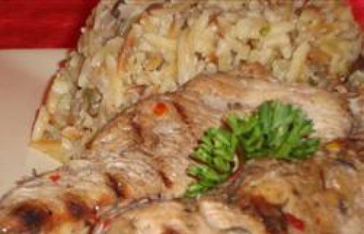 Portionen : 4 ½ Zwiebel, fein gehackt 3 EL brauner Zucker 4 EL Sojasauce 4 EL Rotweinessig 3-4 EL gehackter frischer Thymian 1 EL Sesamöl 3 Knoblauchzehen, gehackt ½ TL Piment 1 Habanero-Chili, in Scheiben geschnitten 4 Hähnchenbrustfilets, in Streifen geschnitt [...]