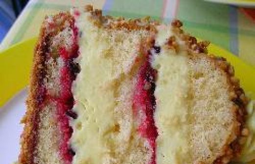 Portionen : 12 Teig: Semmelbrösel für die Form 150 g Zucker 125 g Butter oder Margarine 3 Eier 250 g Mehl 3 TL Backpulver 1 EL Rum Füllung: 200 g Zucker 6 EL Wasser 5 Eigelb 1 ½ Päckchen Vanillezucker 200 g weiche Butter 3 EL Himbeergelee, gla [...]