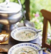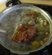 Portionen : 16 2 Rinder-Suppenknochen 2 EL Salz 5 Selleriestangen, halbiert 1 Zwiebel, geviertelt ½ TL gemahlener Pfeffer 2 Gewürzbeutel 6 Karotten, halbiert ½ Bund frische Petersilie, gehackt 11 Knoblauchzehen, geschält 175 g Gerstenkörner Zub.: 20 Min. [...]