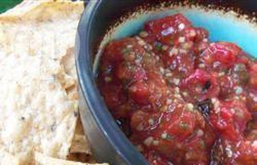 Portionen : 24 12 mittelgroße Tomaten 2 Knoblauchzehen, ungeschält 1 kleine Zwiebel, geviertelt 1 grüne Chili 1 1/2 TL Olivenöl 1 TL gemahlener Kreuzkümmel 1/4 TL Salz 3 EL frischer Limettensaft 3-4 EL gehackter frischer Koriander Zub.: 10 Min. | Kochzeit: [...]
