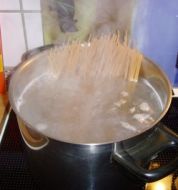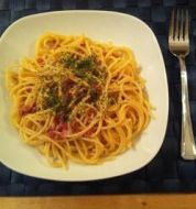 Portionen : 8 1 (500 g)-Packung Spaghetti 1 EL + 1 EL Olivenöl 8 Scheiben Pancetta oder Räucherspeck, gehackt 1 Zwiebel, gehackt 1 Knoblauchzehe, fein gehackt 4 EL trockener Weißwein (optional) 4 Eier, verschlagen 50 g geriebener Parmesan Salz frisch gemahlener [...]