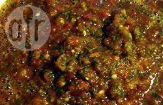 Portionen : 12 ½ Bund frischer Schnittlauch ½ Bund frischer Koriander 2 Knoblauchzehen, gehackt 2 (400 g)-Dosen gehackte Tomaten 2 grüne Chilischoten, entkernt Saft einer Limette Salz Pfeffer aus der Mühle nach Geschmack Zub.: 10 Min. 1. Alle Zutaten in e [...]