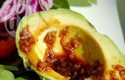 Portionen : 2 1 Avocado ½ TL fein gehackter Knoblauch ½ TL fein gehackter frischer Ingwer 1 TL Sojasauce Zub.: 10 Min. 1. Knoblauch, Ingwer und Sojasauce verrühren und 5 Minuten stehen lassen. 2. Avocado halbieren und entsteinen. Beide Avocadohälften mit Sauce b [...]