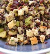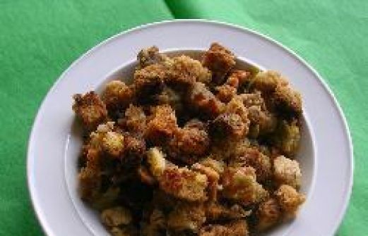 Portionen : 24 30 Scheiben Weißbrot, leicht getoastet 30 g Butter 1 große Zwiebel, fein gehackt 2 Stangen Sellerie, fein gehackt 2 Eier, leicht verquirlt 450 ml Hühnerbrühe 2 TL getrockneter Salbei Salz frisch gemahlener schwarzer Pfeffer nach Bedarf Zub.: 3 [...]