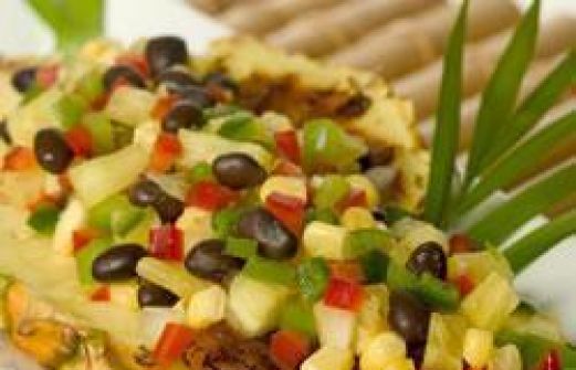 Portionen : 8 150 g frische Ananas, klein geschnitten 1 rote Paprika, gewürfelt 1 grüne Paprika, gewürfelt 175 g tiefgefrorener Mais, aufgetaut 1 (400 g)-Dose schwarze Bohnen, abgespült und abgetropft 2 Frühlingszwiebeln, klein gehackt 2 grüne Chilischote, klein gehackt [...]