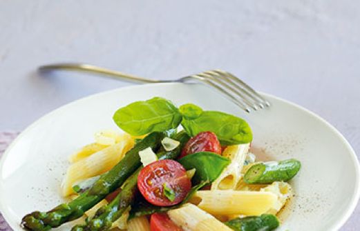 Grüne Spargel-Pasta Zutaten 500 g grüner Spargel 200 g Zuckerschoten 300 g Tomaten 3 Schalotten 400 g Penne (Röhrchennudeln) Salz 2 EL Olivenöl 1 EL Butter 200 g Sahne Pfeffer 8-12 Basilikumblätter 500 g grüner Spargel , 200 g Zuckerschoten , 300 g To [...]
