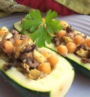 Portionen : 4 2 EL Olivenöl 2 EL gehackter frischer Oregano 2 EL gehacktes frisches Basilikum 1 Knoblauchzehe, fein gehackt frisch gemahlener schwarzer Pfeffer 1 (400 g)-Dose Kichererbsen, abgespült und abgetropft 1 große Zucchini, halbiert und in Scheiben geschnitten [...]