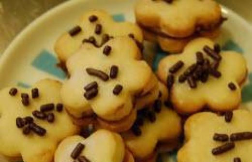 Portionen : 75 250 g Butter 200 g Zucker 2 Eier 500 g Mehl 1 TL Backpulver Nutella Schokoladendekor Zub.: 20 Min. | Kochzeit: 10 Min. 1. Aus allen Zutaten einen glatten Mürbteig kneten. Zu einer Kugel formen, in Folie wickeln und ca. 1 Stunde im Kühlsc [...]