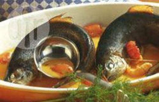 Portionen : 4 4 Forellen, je etwa 250 g 2 Bund Dill 1 l Wasser Salz 1 Schuss Weißwein 1 l Wasser Salz Dillsamen 12 lebende Flusskrebse 45 g Butter 2 EL Mehl Saft von 1/2 Zitrone 60 g Schlagsahne Salz weißer Pfeffer 1 Prise Zucker Zub.: 2 [...]