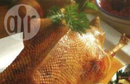 Portionen : 6 1 junge küchenfertige Gans (3 kg) Salz 300 g säuerliche Äpfel 100 g Schwarzbrot 1 Hand voll Beifuß 2 EL Sultaninen 1 Prise Salz 2 EL Zucker 125 ml Fleischbrühe 1–2 EL Mehl Pfeffer Zub.: 45 Min. | Kochzeit: 2 Stunden 30 Min. 1. [...]