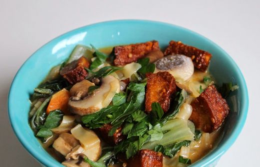 Oder Nudelsuppe Asia-Style. ;-) Die Kombination von Kokosmilch mit Nudeln mag ungewöhnlich klingen (zumindest für mich), aber auf Reis hatte ich keine Lust, auf Kohlenhydrate aber schon, also entschied ich mich, endlich die Packung Asia Wok Nudeln, die noch auf Verwendung wartete , aufzubrauch [...]