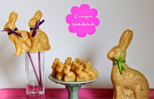 Meine erste Osterschokolade bei der Großproduktion am Palmsonntag war diese helle Orangen-Schokolade, orangifiziert durch 2 Tropfen ätherisches Orangenöl.
