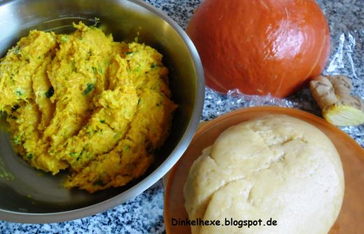 Weitere Zutaten: Hokkaido, Ingwer, Frühlingszwiebeln, Salbei, Ricotta, Salz und Pfeffer