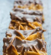 Wie nur kriege ich diese Dinger in Form? In den Rezepten steht immer in etwa: Nach dem Backen mit einem Glas oder einem runden Ausstecher in Form bringen. Das hat bei mir überhaupt nicht geklappt. Alles klebte fest. Dann versuchte ich es mit zwei Löffeln. Das ging ganz gut. Aber bis ich die ein [...]