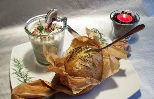 Ofenkartoffel mit Radieschen-Frischkäse-Dip