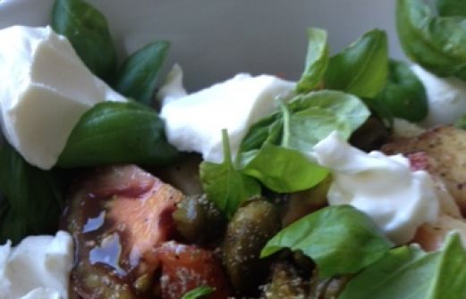 Zu warm zum Kochen. Deshalb gibt's den weltbesten Sommersalat. Reife bunte Tomaten, geschmacksintensive Nektarinen, Kapern, Basilikum und Ziegenfrischkäse. Salz, Pfeffer, Olivenöl und Balsamico. Dazu Parmesankekse und der Sommerabend ist wunderbar. Rezept zu den Keksen gibt es hier: http://samm [...]