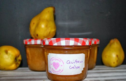 Zutaten: 1,25 kg Quitten 1 unbehandelte Zitrone (Schale und Saft) 1 Zimtstange 1 1/2 l Wasser 500 g Gelierzucker 2:1 Zubereitung: Quitten mit Küchenkrepp gründlich abreiben. Vierteln und das Kerngehäuse entfernen, nicht schälen. In kleine stücke schneiden und in ei [...]
