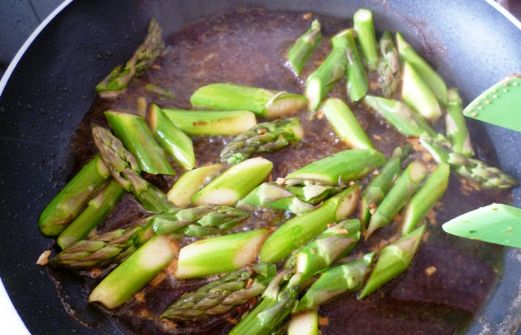 Zu der überbackenen Aubergine gab es noch grünen Spargel in Parmesansauce mit Rindfleisch. Hach ich vermisse jetzt schon wieder die Spargelsaison.