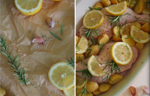 Das Hähnchen wird mit vielen leckeren Zutaten wie Zitrone, Rosmarin und Knoblauch in der Auflaufform verfeinert.