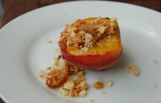 Bei den Grill-Pfirsichen werden diese auf dem Grill zubereitet während die Amarettini-Masse in der Pfanne zubereitet wird.