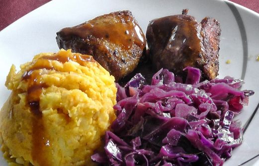 Yummy Apfel-Rotkohl (Blaukraut) und Kürbis-Kartoffel-Püree