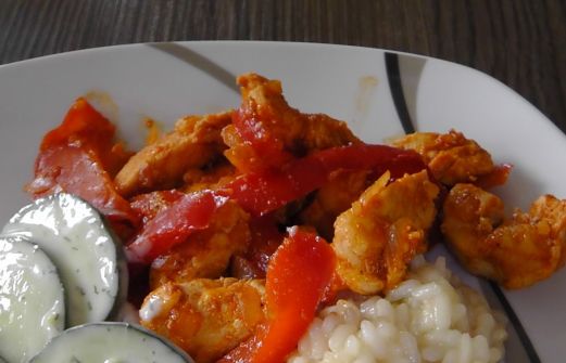 Yummy Paprikahähnchen schnell & lecker Zutaten (4 Port.): 600g Hähnchenbrustfilet 1 Zwiebel 1 Knoblauchzehe 2 rote Paprikaschoten 100g Tomatenmark Öl, Salz, Pfeffer, Paprikapulver Beilagen: Gurkensalat, Couscous 1. In einem Topf Öl erhitzen. In Streifen ge [...]