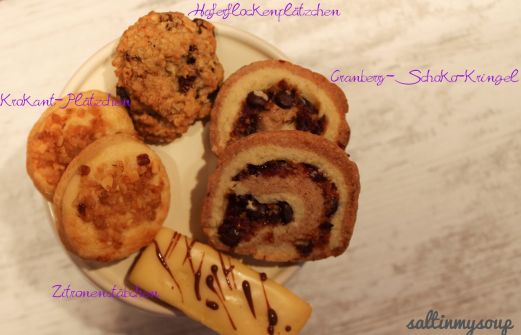 Zu Weihnachten gehören natürlich Plätzchen.. viele Plätzchen. Rund, eckig, ausgestochen, süß, würzig.. hach was gibt es nicht alles. Auf dem Foto seht ihr vier verschiedene Plätzchensorten: Krokant-Plätzchen Cranberry-Schoko-Kringel Haferflockenplätzchen Zitronenstäbchen 1. K [...]