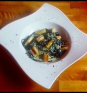 Die Biokiste lieferte ja einen kleinen, hübschen Kürbis namens "Sweet Dumpling". Dieser tatsächlich süß schmeckende Kürbis wird häufig für Kuchen oder andere Süßspeisen genutzt.