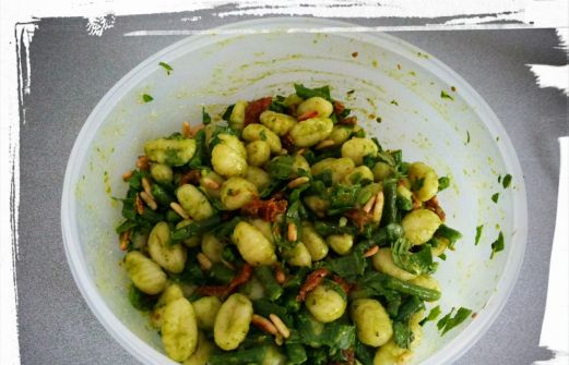 Ja im Moment bekommt auf dem Wochenmmarkt herrliche Bohnen. Strauchbohnen, Stangenbohnen, Breite Bohnen. Ich liebe Strauchbohnen auch Buschbohnen genannt. So habe ich unseren geliebten Gnocchisalat mit ihnen aufgepimpt. Man braucht: 1 Pk Gnocchi 1 Tüte Pinienkerne 1 Bund Ruccola 1 H [...]