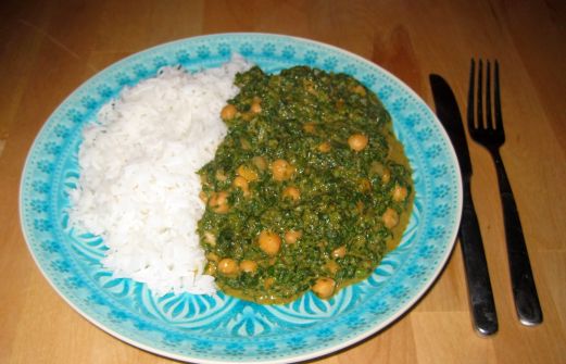 I want to present you one of my favorite Indian dishes. It´s Saag Aloo (with potatoes) or Saag Chana (with chickpeas).