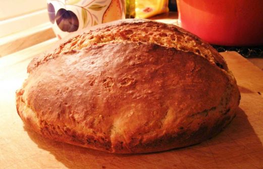 Um ein leckeres Brot zu backen, dafür braucht es manchmal nur wenige Zutaten, damit es eine schöne Form bekommt, habe ich es in einem gusseisernem Bräter gebacken, mit Backpapier ausgelegt, spart es einiges an Arbeit, das Brot aus der Form zu bekommen.