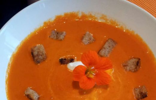 Zutaten für 4 Portionen als Hauptgericht - 2Tl Olivenöl - 2 Zehen Knoblauch - 1 Zwiebel - 1 Möhre - 2Tl Kräuter der Provence - 3 rote Paprika - 425ml Gemüsebrühe - 800g Tomaten - 200g Frischkäse - Salz/Pfeffer Zubereitung 1. Den Knoblauch pressen, die Zwiebeln [...]