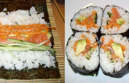 das war meine - lecker!!^.^ für 2 Rollen Zutaten vorbereiten: 1 Möhre Sesamöl Weißer Sesam 1. Die Möhre in dünne Streifen schneiden und mit den Sesamölanbraten, dabei etwas Sesam darüber geben. Abkühlen lassen. Wenn möchte kann man es auch als Kinpira machen. Dann noch [...]