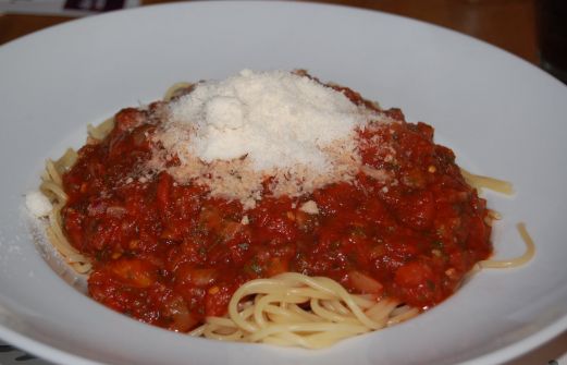 Total einfach, total schnell, total lecker! Rezept Zwiebeln anbraten, gehackte Tomaten aus der Dose dazu, mit Salz, Pfeffer, TK italienischen Kräutern und Knoblauch würzen, mindestens 15 Minuten köcheln lassen und mit den Nudeln servieren!