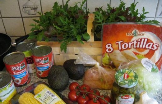 Zutaten für die Enchiladas für drei Personen: