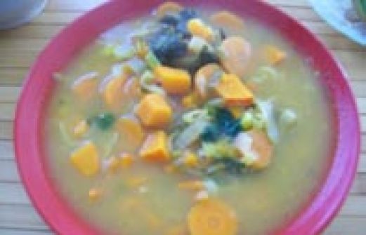 Schneide einen Kürbis in Stücke, 2 Karotten und eine Stange Lauch in Scheiben und röste das GEmüse in einem Suppentopf in etwas Alsana (vegane Butter) an. Röste kurz pro Person 1 TL Braunhirsemehl mit.Gieße mit 1 1/2 l Gemüsesuppe auf und würze mit 2 Lorbeerblättern, einige Zellerblätter, 1 Pri [...]